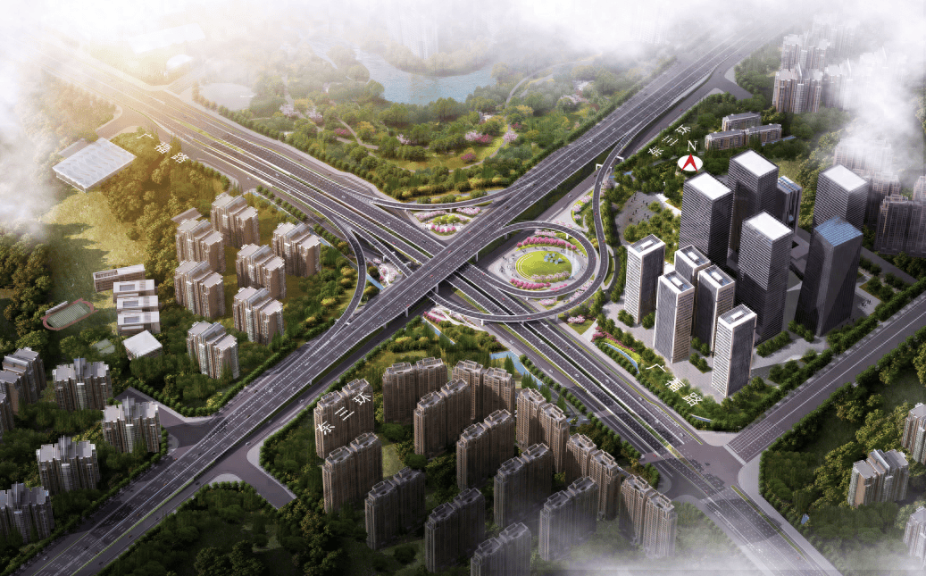新建的广昌立交桥位于现状广福路、昌宏西路上。广福路跨线桥为分离式桥梁,昌宏路跨线桥为整体式桥梁,结合项目整体施工组织及交通组织,广昌立交桥将分三期工程进行围挡封闭施工。项目于2023年4月1日开工建设,一期工程(新建东西向广福路保通道路)已实施完成。